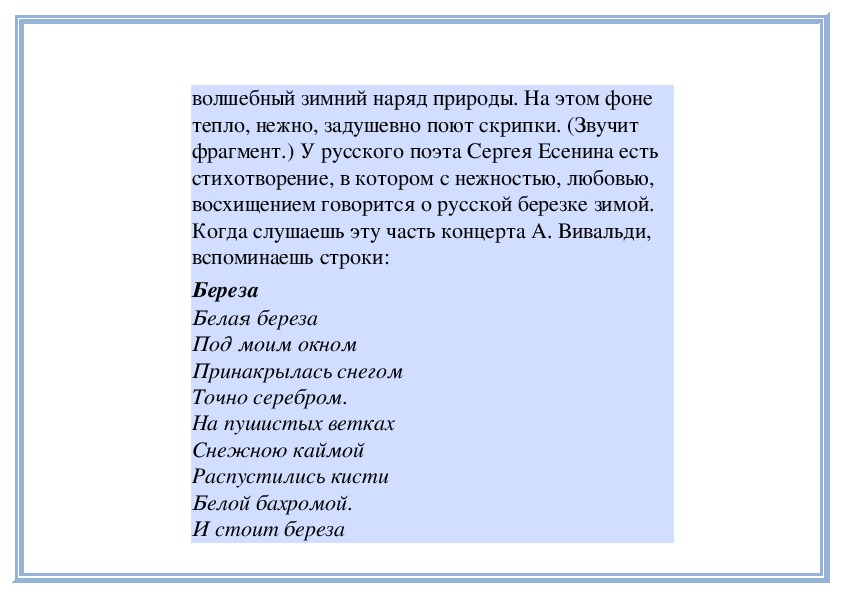 П е д а г о г. Да, в стихотворении С. Есенина с