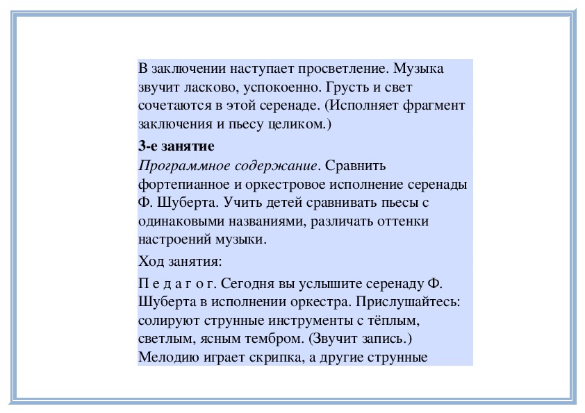 Ф. Шуберта. Учить детей сравнивать пьесы с
