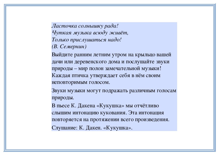 П е д а г о г. Прислушайтесь внимательно.