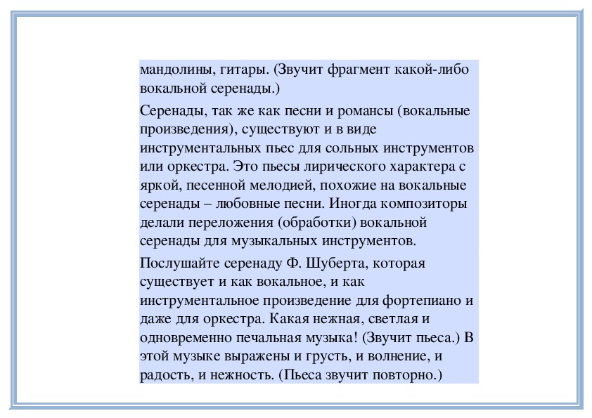 сочетаются в этой серенаде. (Исполняет фрагмент