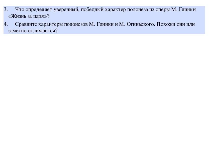 4. Сравните характеры полонезов М. Глинки и М. Огиньского. Похожи они или