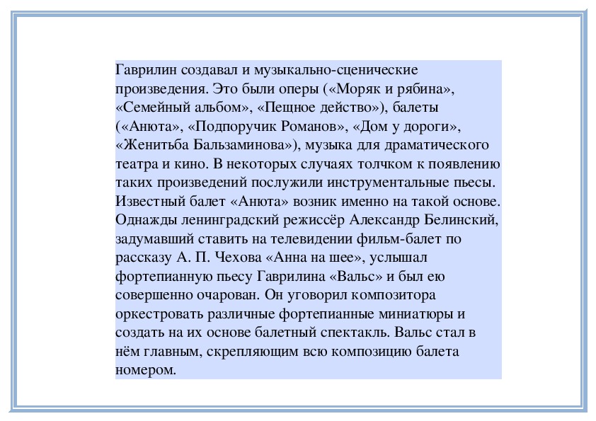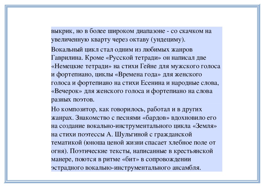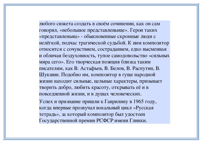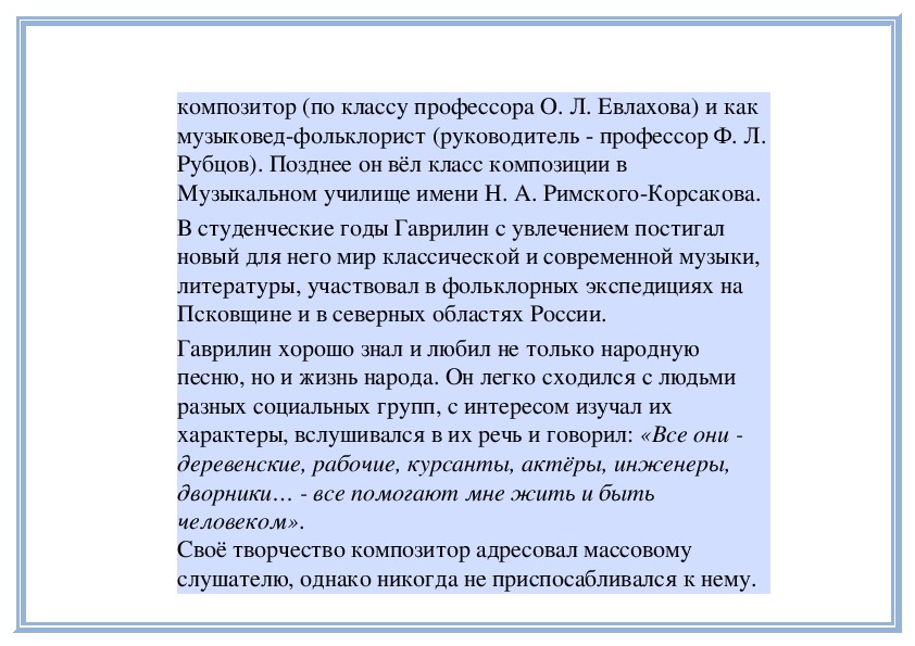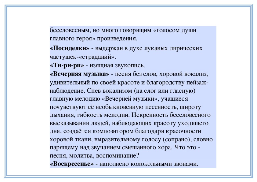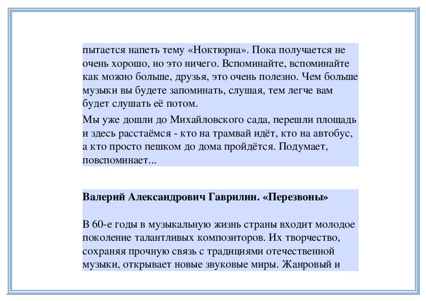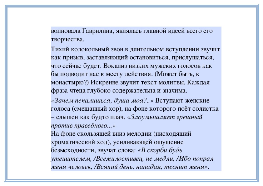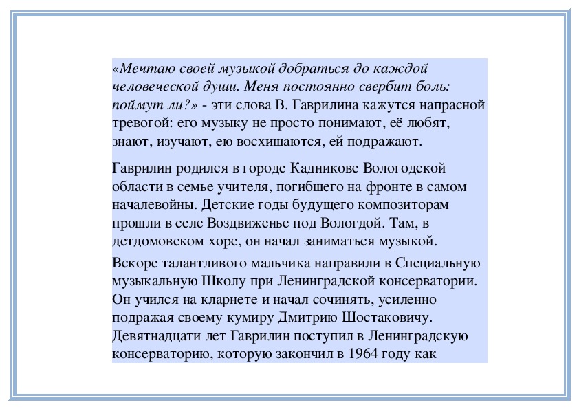 Эпиграфом к этому замечательному сочинению Валерия Александровича Гаврилина могли бы стать его собственные поэтические строки: