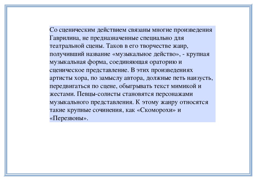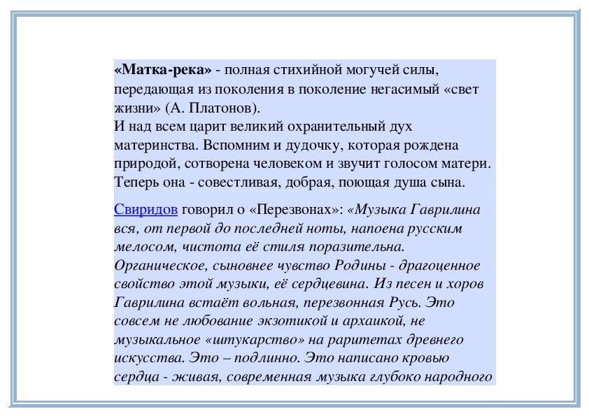 дороги, пути, реки жизни...»«Перезвоны» вершина творчества Гаврилина. Это