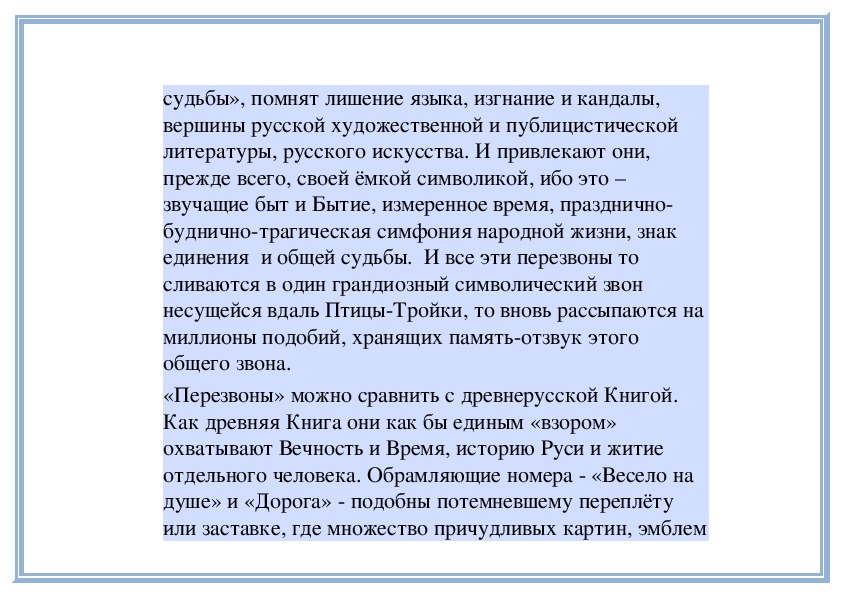 «Перезвоны» можно сравнить с древнерусской Книгой.