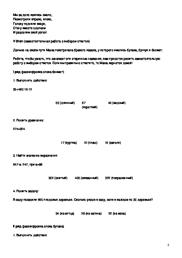 Ребята, чтобы узнать, что означают эти старинные названия, вам придется решить самостоятельную