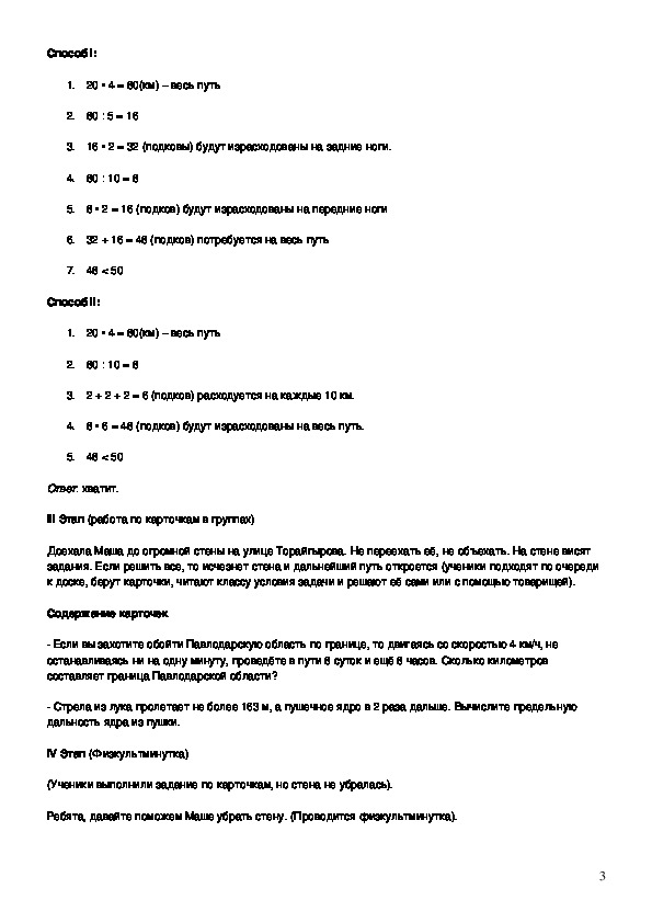 «Хватит ли Вите 50 подков для лошади на весь путь, если он будет скакать со скоростью 20км/ч на