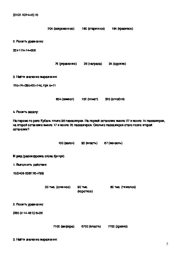 получаются из суммы всех правильных ответов каждого из трех устных заданий.1) Найти значение выражений: