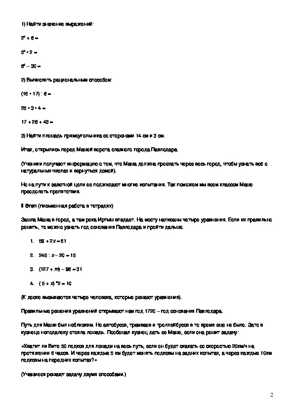 Правильные решения уравнений открывают нам год 1720 – год основания Павлодара.
