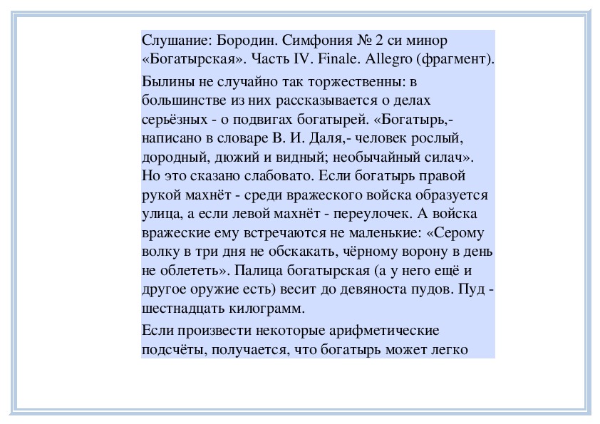 самая настоящая песнь.Слушание: Бородин. Симфония № 2 си минор