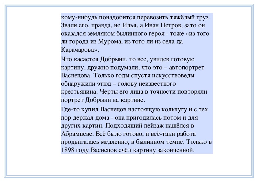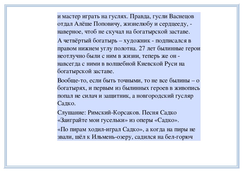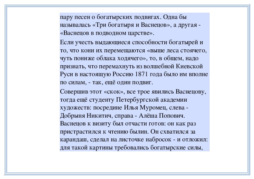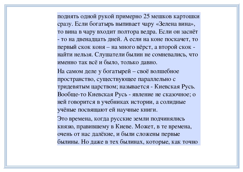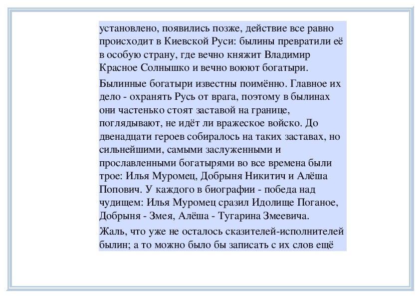 былин; а то можно было бы записать с их слов ещёпару песен о богатырских подвигах. Одна бы