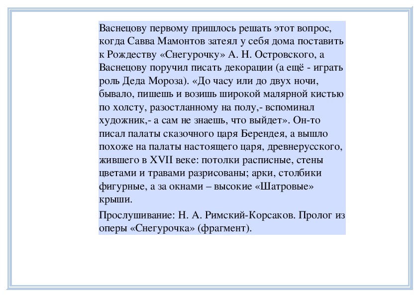 Васнецову поручил писать декорации (а ещё играть