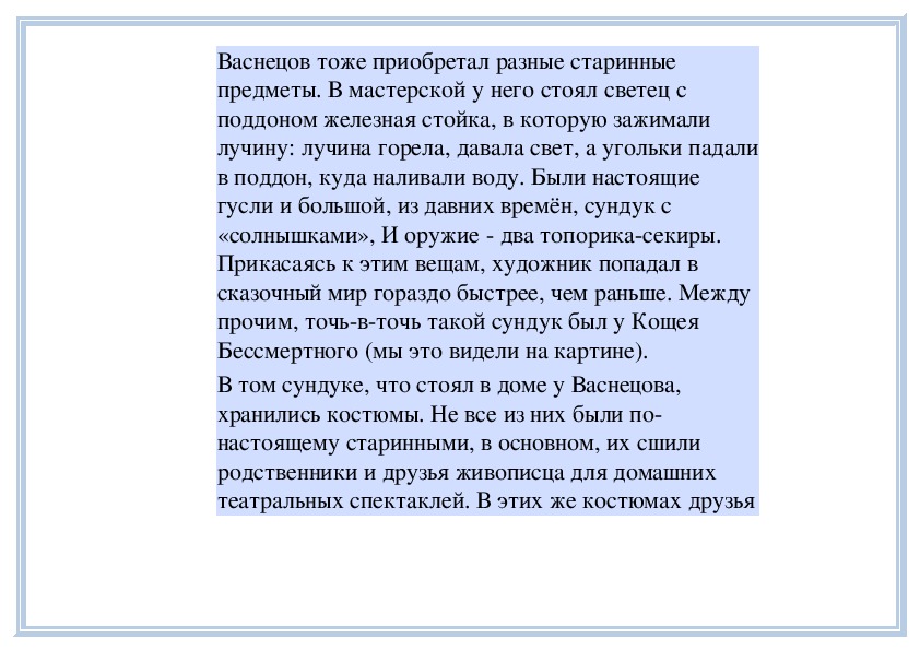 театральных спектаклей. В этих же костюмах друзьяи родственники позировали Васнецову для картины