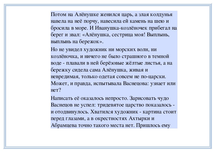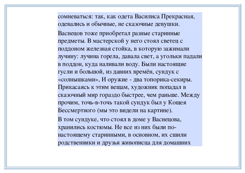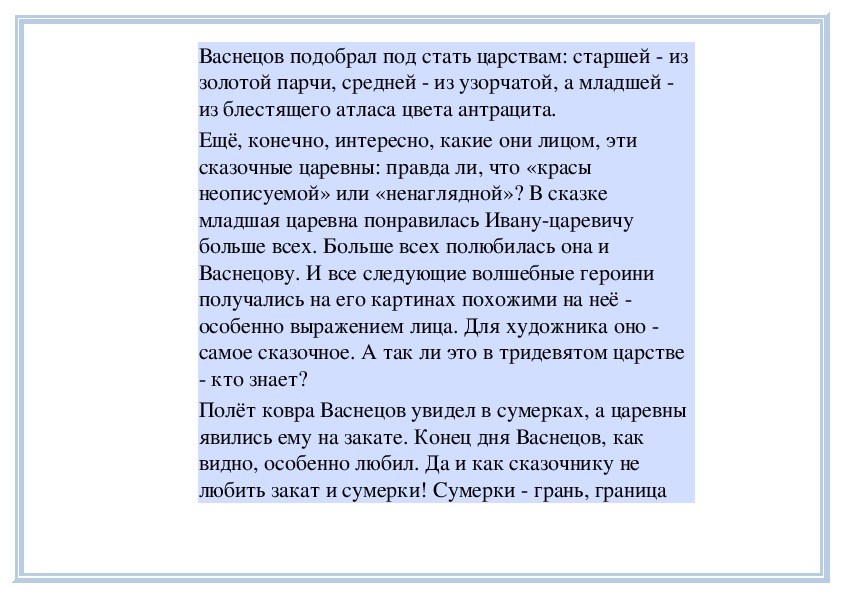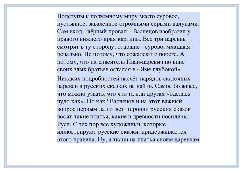 Виктор Васнецов и Иван Билибин вывели к зрителям целую вереницу сказочных героинь. Помимо «Красы неописуемой», было и ещё чем блеснуть этим волшебным девицам: у каждой - свой характер и собственная неповторимая история.