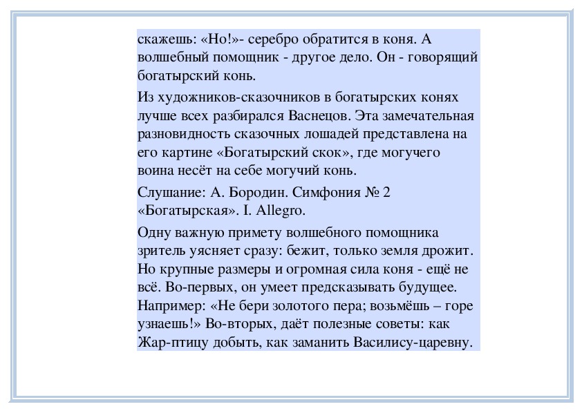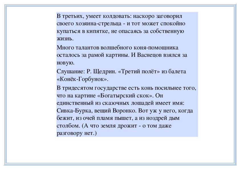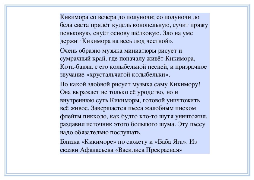 сказки Афанасьева «Василиса Прекрасная»композитор выбрал самый динамичный эпизод: