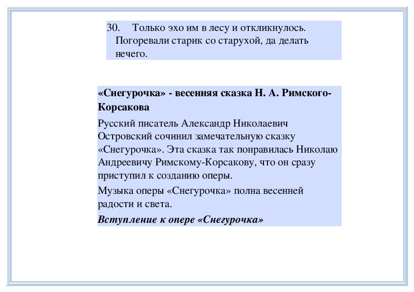 к Рождеству «Снегурочку» А. Н. Островского, а
