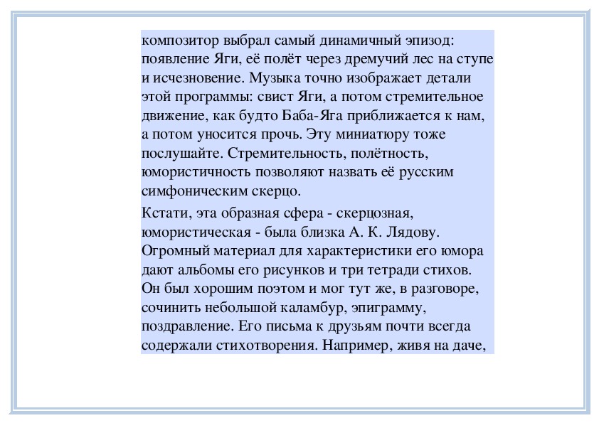 Прослушивание: А. Лядов. Плясовая.Безымянная сказочная красна девица, чтобы найти