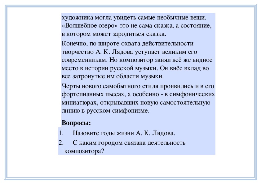 композитора?3. Как отреагировал А. К. Лядов на увольнение из