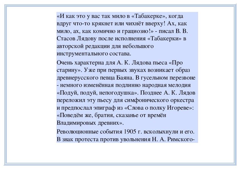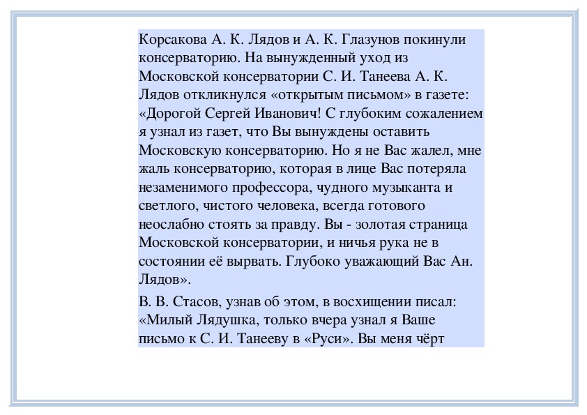 ударом для А. К. Лядова. Но через два года его