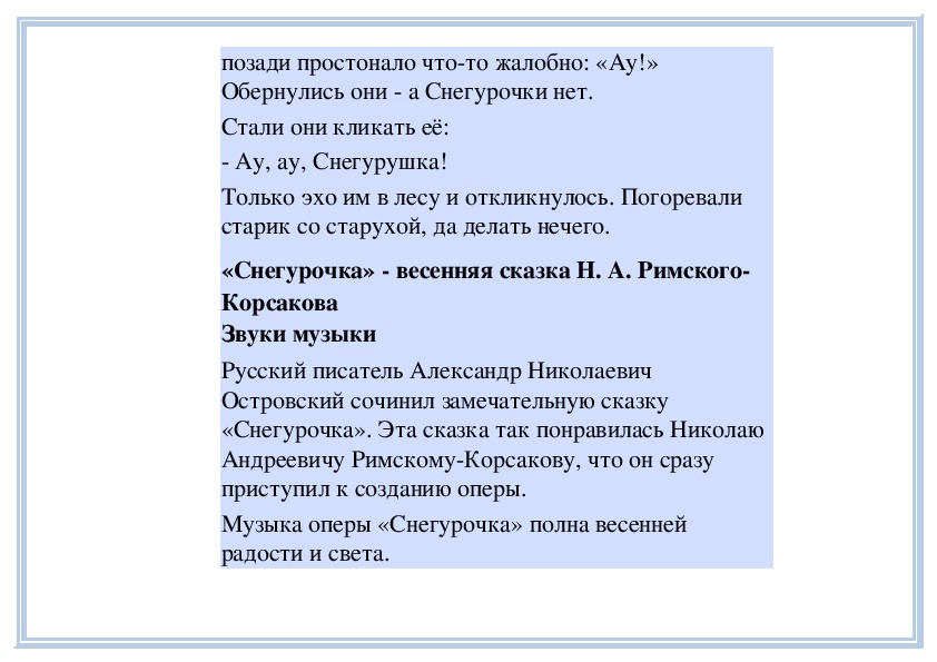оперы «Снегурочка» (фрагмент).Почему так вышло, неизвестно. То ли снова