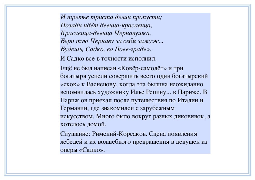 «скок» к Васнецову, когда эта былина неожиданно