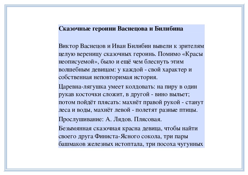 Михайлович Васнецов!Сказочные героини Васнецова и Билибина