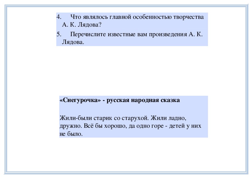 Прослушивание: А. Лядов. Плясовая.