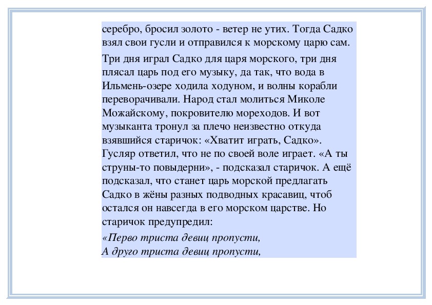 взявшийся старичок: «Хватит играть, Садко».