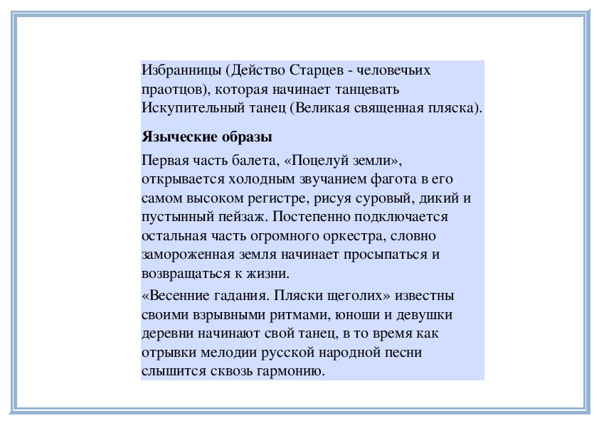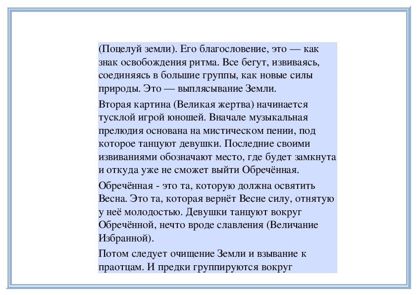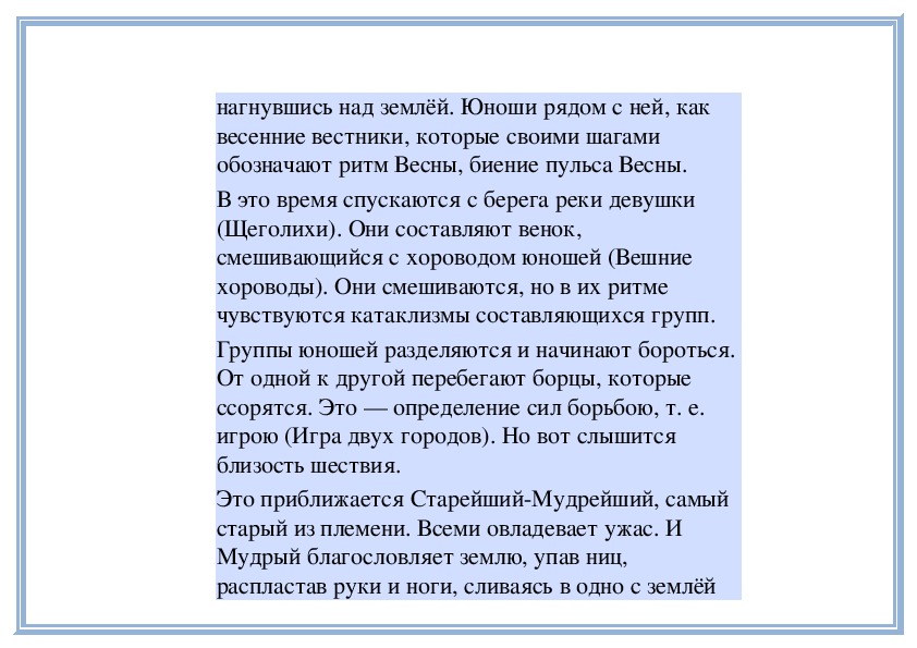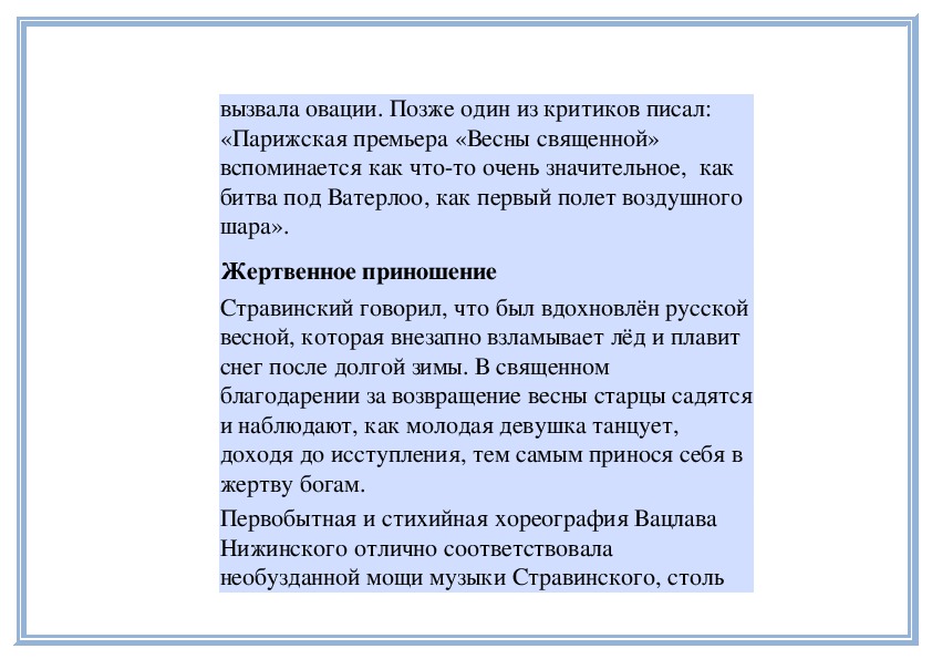 высланное затем Дягилеву: «В балете «Весна
