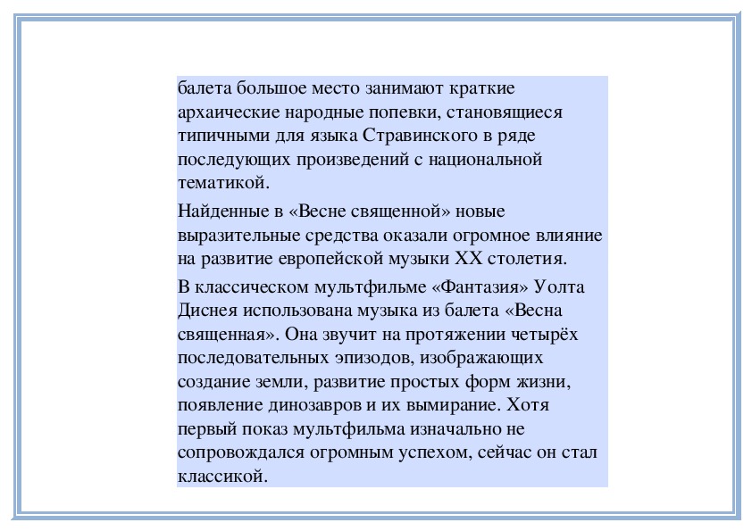 Диснея использована музыка из балета «Весна