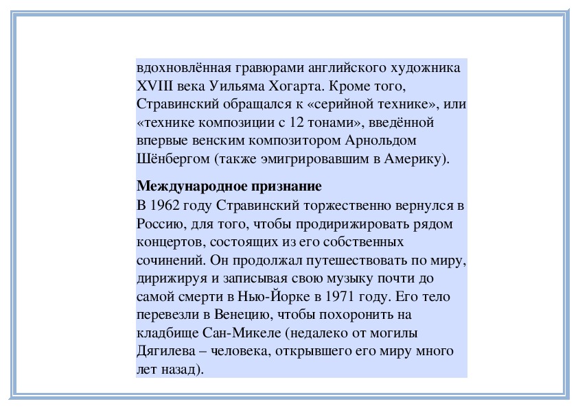 гражданином. Творчески Стравинский был