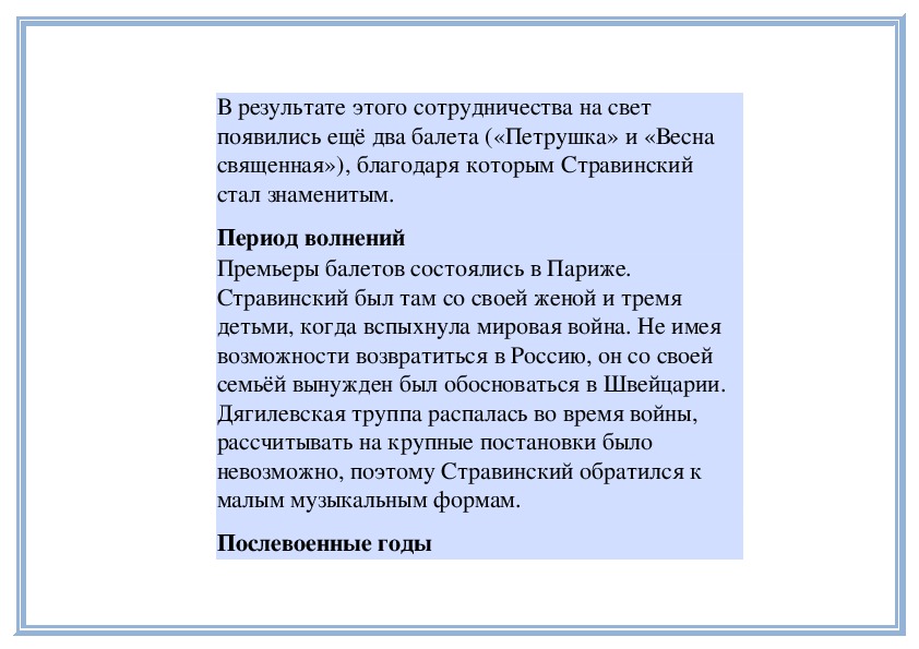 невозможно, поэтому Стравинский обратился к