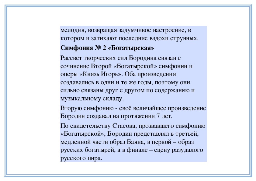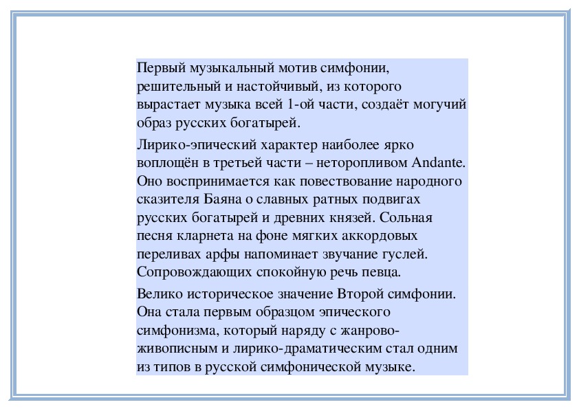 из типов в русской симфонической музыке.Подробнее о Бородине