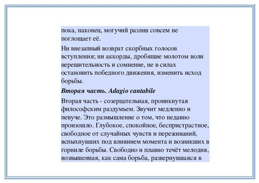 взволнованной. Вскоре вновь звучит лирическаямелодия, возвращая задумчивое настроение, в