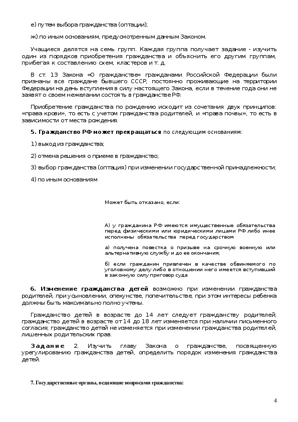Задание 2. Изучить главу Закона о гражданстве, посвященную