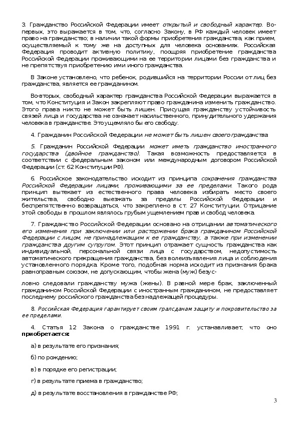 Конституция РФ и Закон о гражданстве устанавливают прежде всего те общие