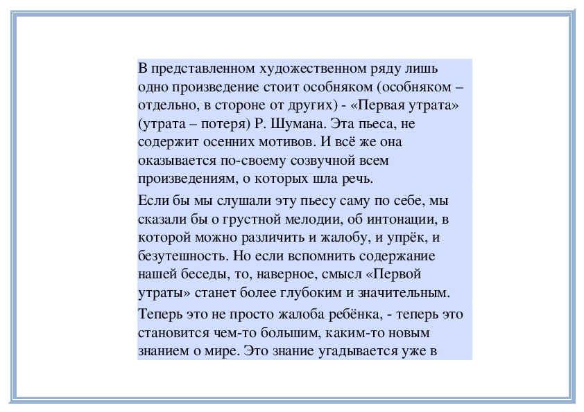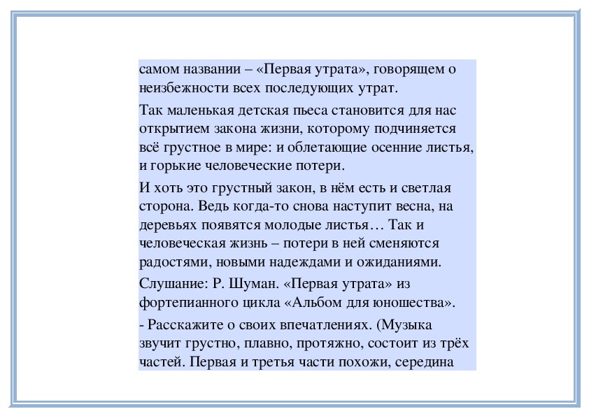 2. Р. Шуман. «Первая утрата» (из фортепианного цикла «Альбом для юношества», слушание).