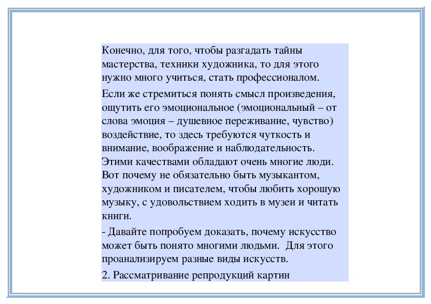 1. Какие качества необходимы человеку, чтобы понять смысл искусства.
