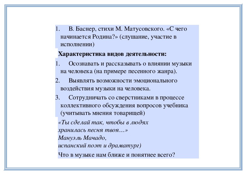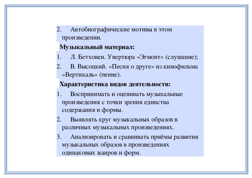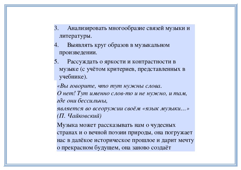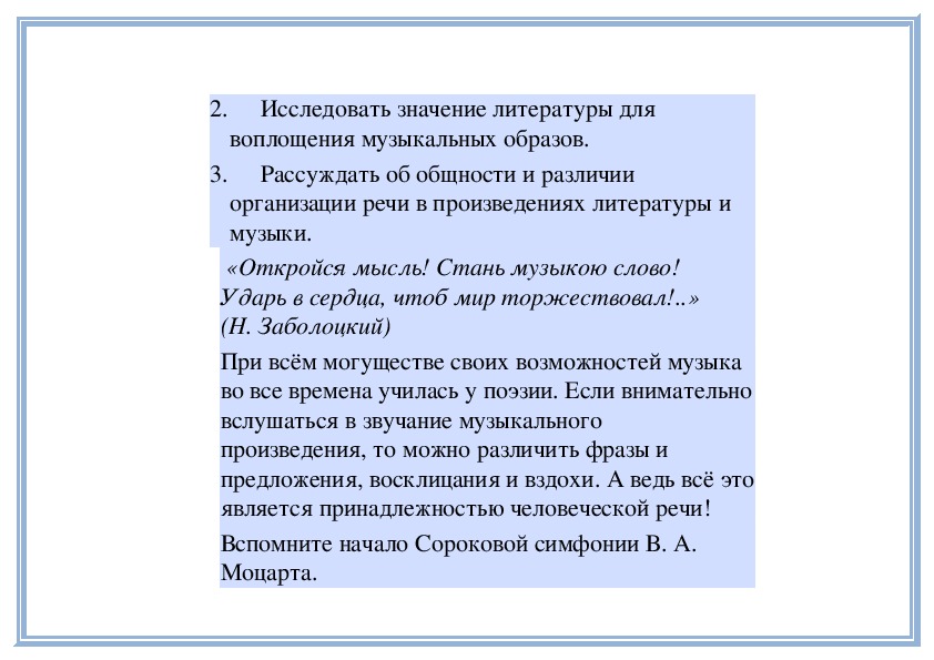 2. Анализировать и обобщать многообразие связей музыки и литературы.