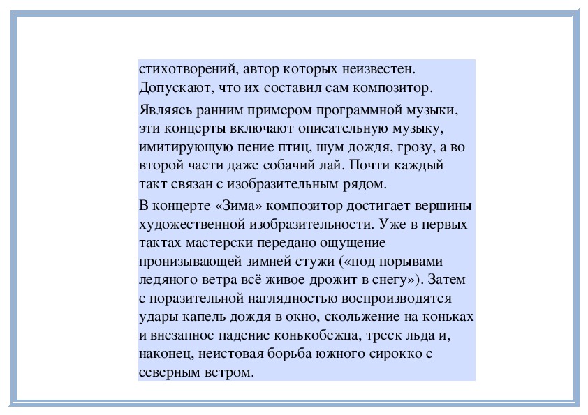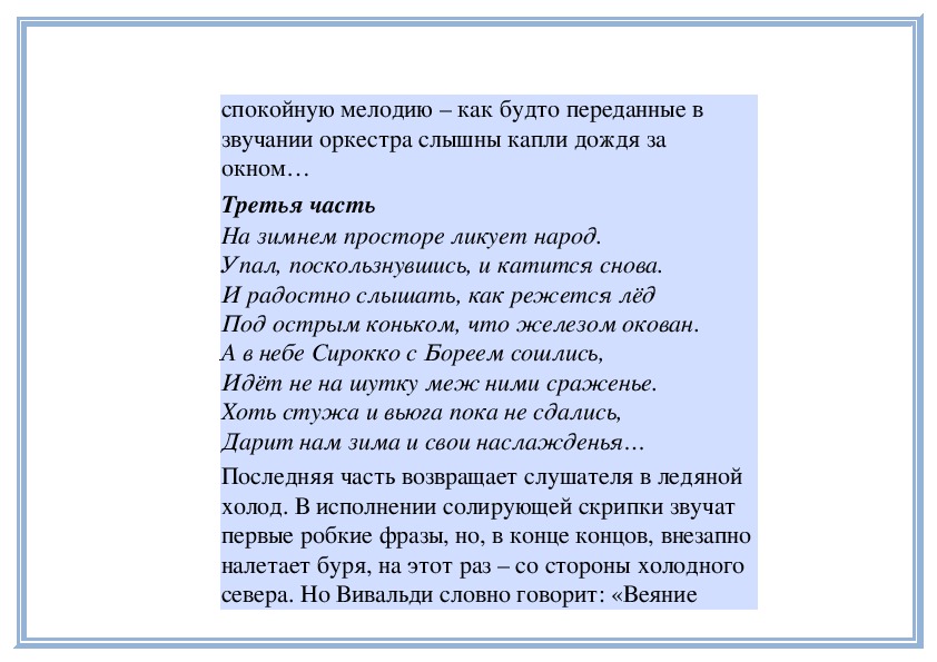 севера. Но Вивальди словно говорит: «Веяниесирокко приходит с юга, весна не может быть