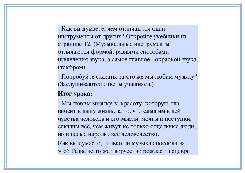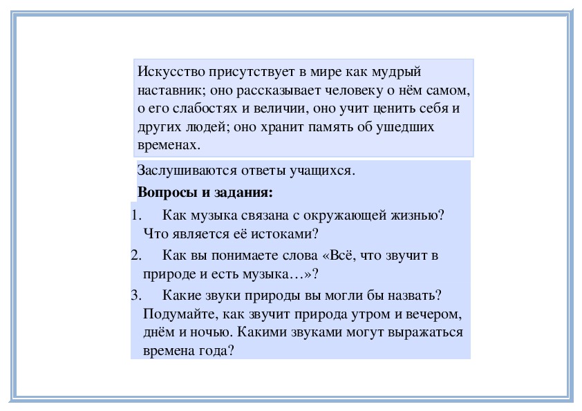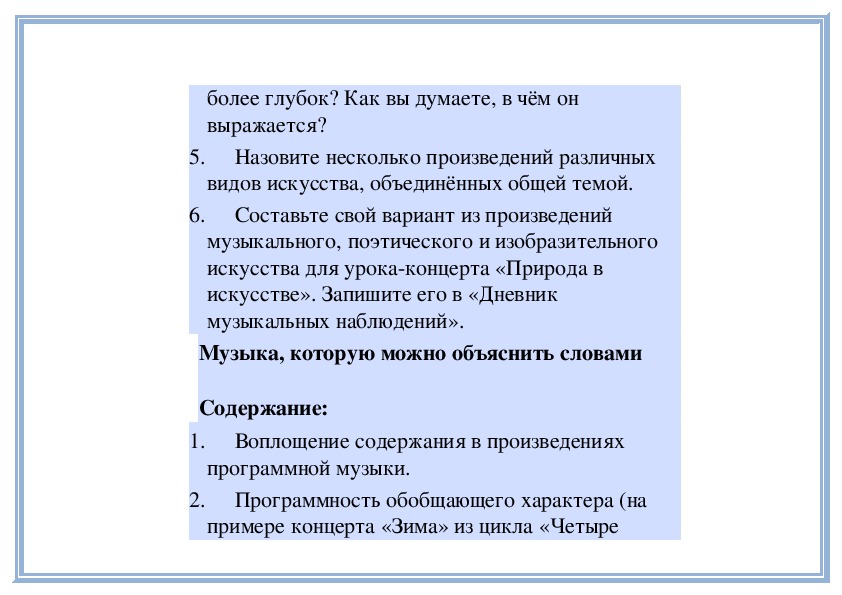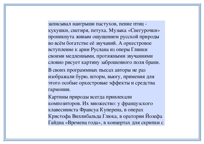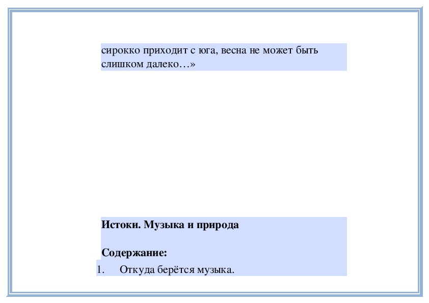 1. Откуда берётся музыка.2. Передача звуков природы в музыкальных