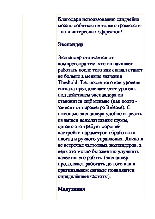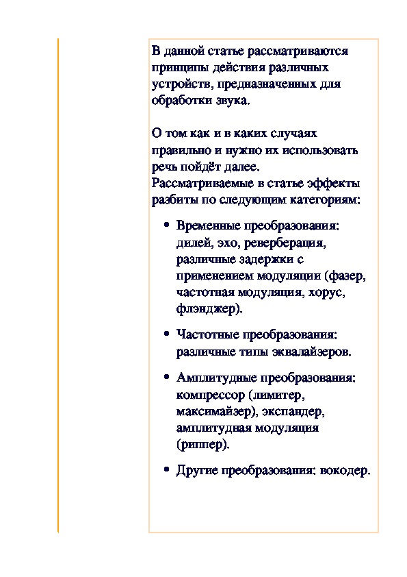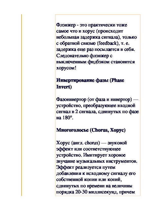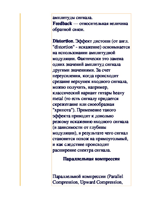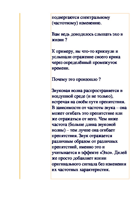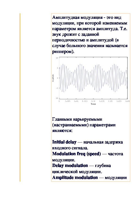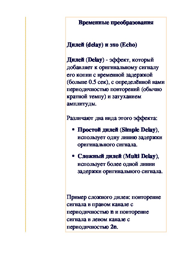 • Сложный дилей (Multi Delay), использует более одной линии задержки оригинального сигнала.