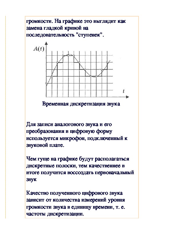 на дискретную последовательность уровнейгромкости. На графике это выглядит как