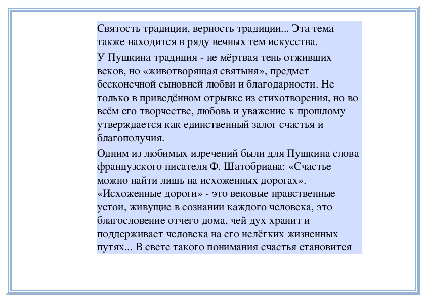 2. Смысл изречения Ф. Шатобриана: «Счастье можно найти только на исхоженных дорогах».