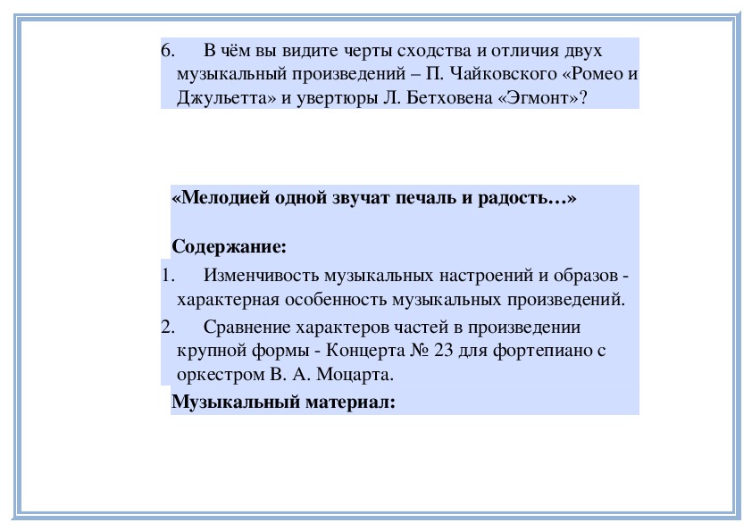 Музыкальный материал:1. П. Чайковский. Увертюрафантазия «Ромео и