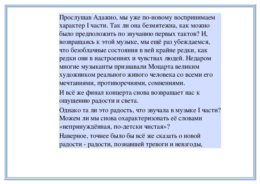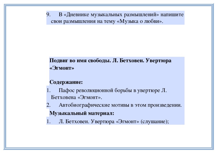 2. Воспринимать и оценивать музыкальные произведения с точки зрения единства содержания и формы.