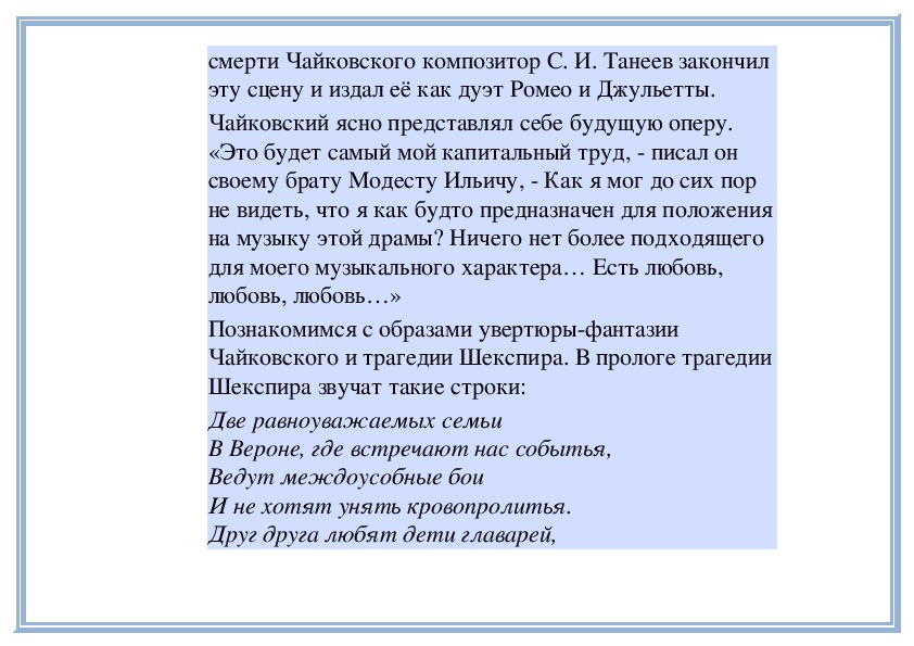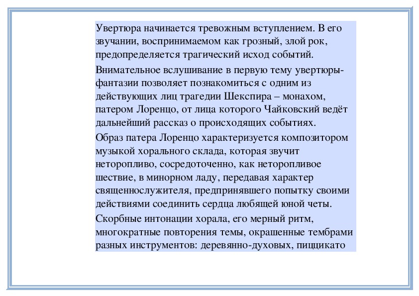 Трагедия любви в музыке. П. Чайковский. «Ромео и