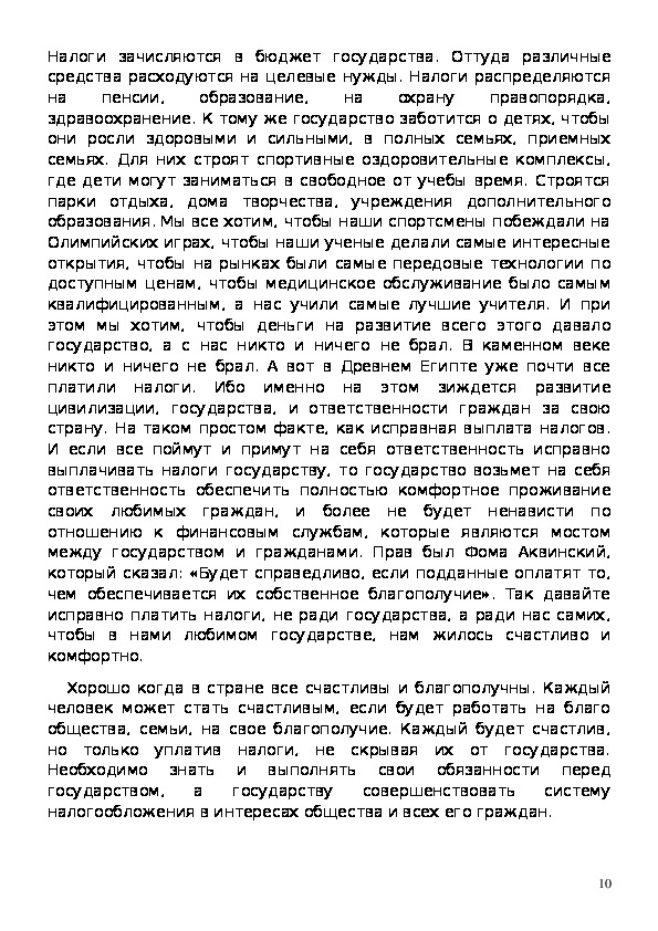 Выводы синквейна напоминают нам, что уплата налогов – это