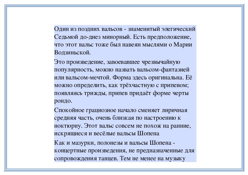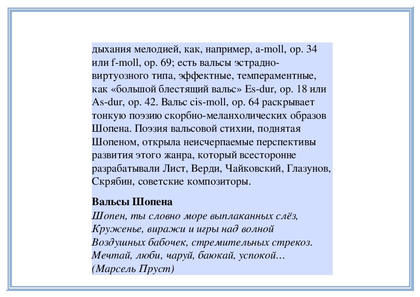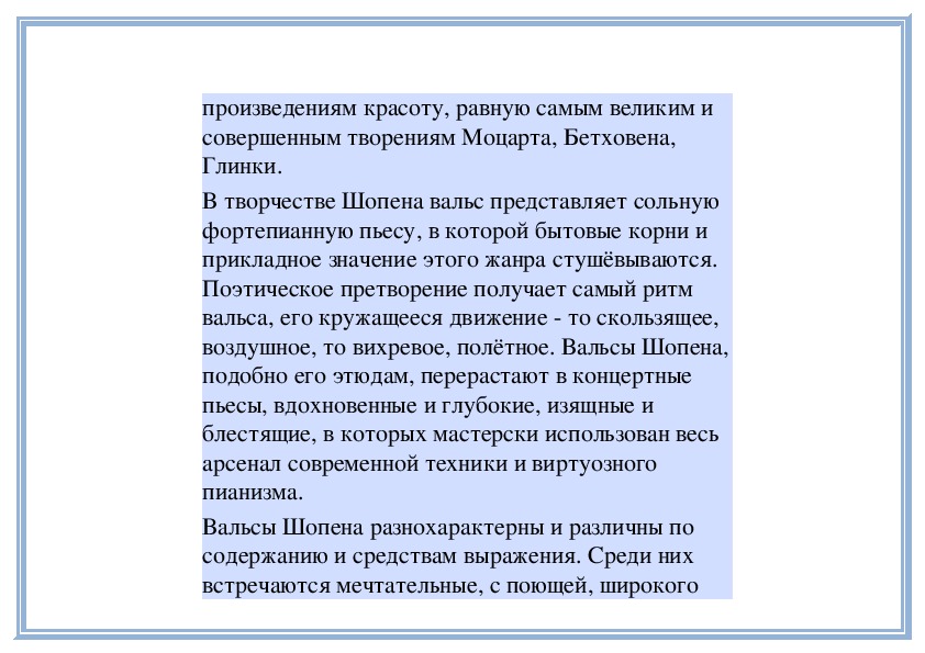 Эти черты искусства Шопена придают егопроизведениям красоту, равную самым великим и