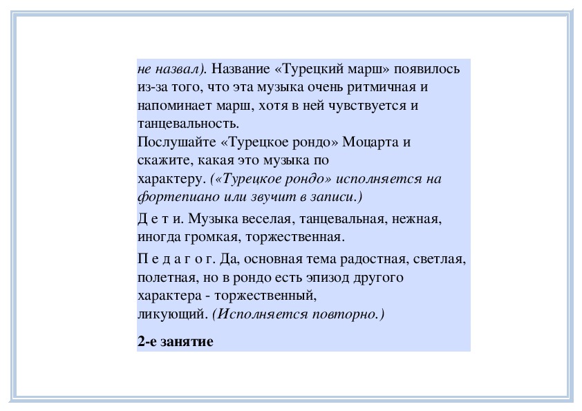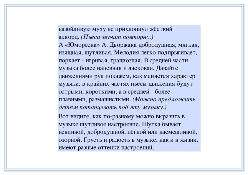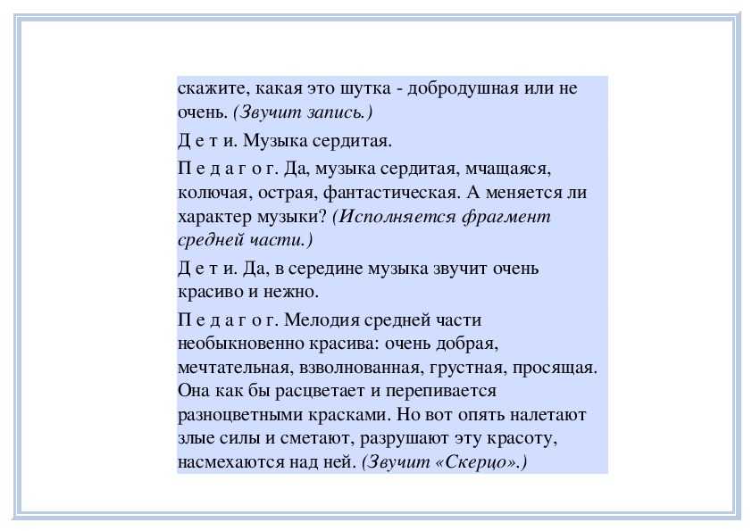 Д е т и. Спокойная, задумчивая.П е д а г о г. Да, эта часть проникнута настроением
