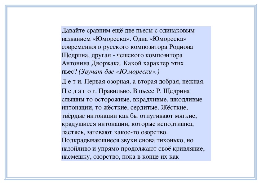 П е д а г о г. В любом музыкальном произведении